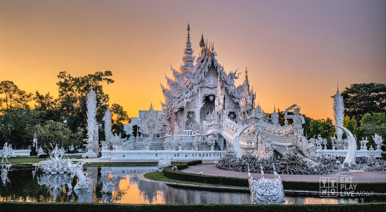 白廟的官方名稱為龍昆寺,距離清萊市中心約13公里,由泰國著名藝術家許龍才(Chalermchai Kositpipat)設計及自資興建。白廟自1997年起動工,至今尚未完成,在2014年曾遭地震破壞,幸好基本結構無損。白廟風格別樹一幟,顏色與泰國別的廟宇很不同,許龍才先生認為白色象徵純潔,鑲邊的銀色小鏡片則代表智慧。周圍的雕塑造型複雜,感覺華麗、夢幻得來又帶點神秘。主殿由一座橋連接,過橋前可看到「地獄池」裡有一堆舉起的手臂,有說這些手代表凡人的貪念,也有說是等待救贖的人;另外還有骷髏頭骨模型,頗為嚇人。聽說走過這條橋象徵摒棄惡念,走向極樂世界,因此不得走回頭路。主廟內有奇特的壁畫,當中有美國前總統布殊、米高積遜、蜘蛛俠、Hello Kitty、911災難等的畫像,甚為破格。參觀時留意主殿內不得拍攝。由於許龍才先生不想創作自由受到限制,不接受大額資助,只接受民眾小額的捐款(最多不能超過1萬泰銖),可謂一個真正的藝術家。