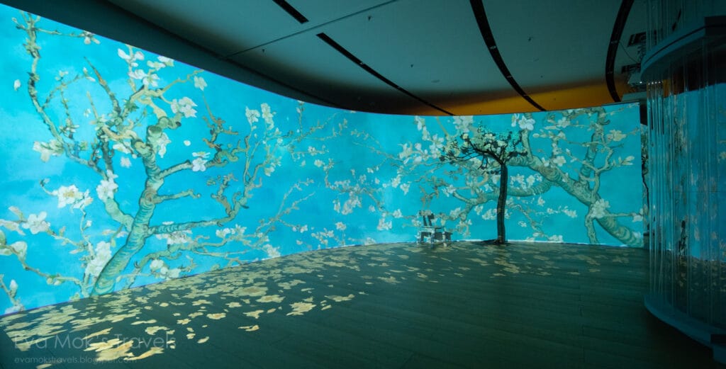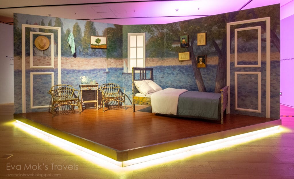 展覽在B1層,有11 個主題空間 ,及 21 幅梵高經典畫作,結合AI、AR、光影特效及體感裝置,掃QR Code有語音導覧。每個場景的佈置也與畫作配合,部分展區有香氣,而且不是刺鼻的平價香精,鼻敏感的我也聞得舒服。此外,還有配合場景的音樂。