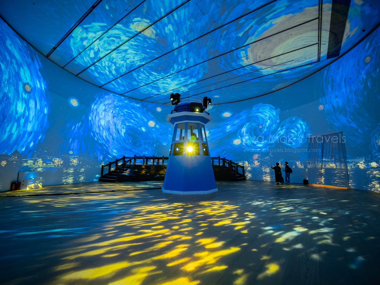 不用說也知道這《星夜》+《羅納河上的星夜》是重頭戲,照片拍得再好,也不能反映沉浸式完全置身於油畫中的感覺,很像去了另一個世界,聽著悅耳的音樂,真的想停留下來。梵高在生的話,看到這場面應該都會很感動吧。